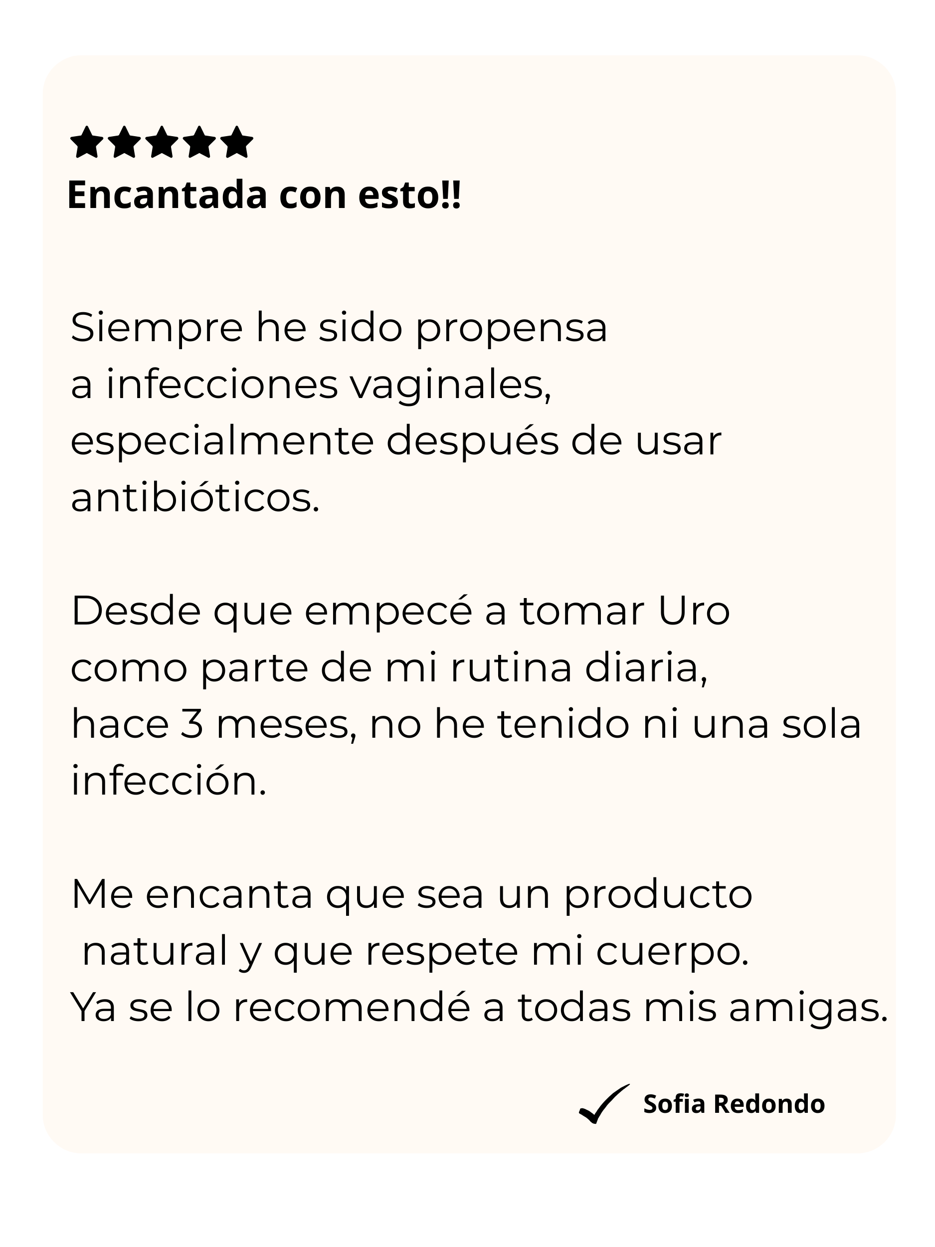 URO está diseñado principalmente como un suplemento preventivo para mantener la salud vaginal y el equilibrio del pH. No debe considerarse un tratamiento para infecciones existentes. Si sospechas de una infección, es importante consultar a un profesional de la salud para recibir el tratamiento adecuado.