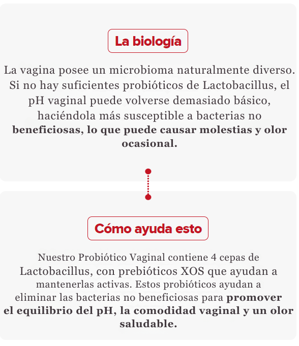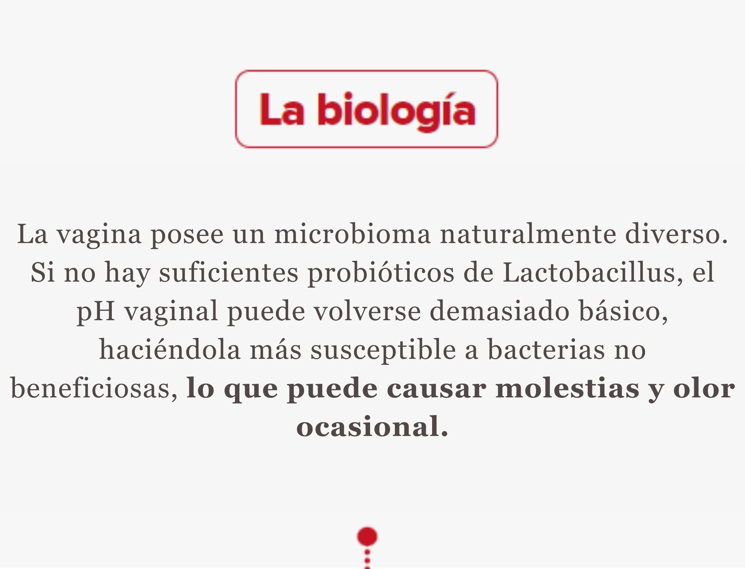 El mal olor vaginal suele ser consecuencia de desequilibrios en la microbiota. nuesttro probiótico vaginal contribuye a restablecer el pH óptimo (ácido) y limitar la presencia de compuestos volátiles maloliente